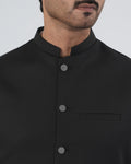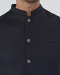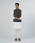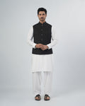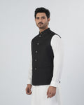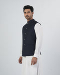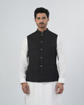 This Men's plain waistcoat is made from polyester fabric, offering a smooth finish and comfortable wear for formal and traditional occasions. Designed in a regular fit, it provides a neat and structured look that layers well over shalwar kameez or formal shirts. The sleeveless design keeps it lightweight and easy to wear, while the band collar adds a classic eastern touch, making it suitable for weddings, formal events, and festive gatherings.