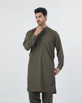 This Men's plain shalwar kameez is made from PV fabric, offering durability with a comfortable feel for daily and formal wear. Designed in a tailored fit, it provides a clean and well-structured appearance while allowing ease of movement. The full sleeves give it a traditional finish, while the band collar adds a neat eastern touch, making it suitable for office wear, Jummah, and formal occasions.