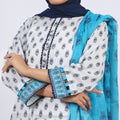 Women’s Stitched 3-Piece Cotton Suit – White & Blue